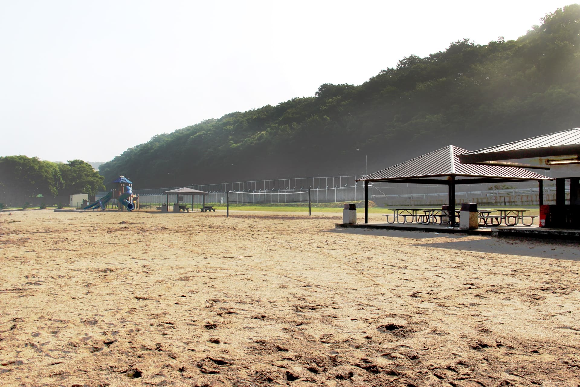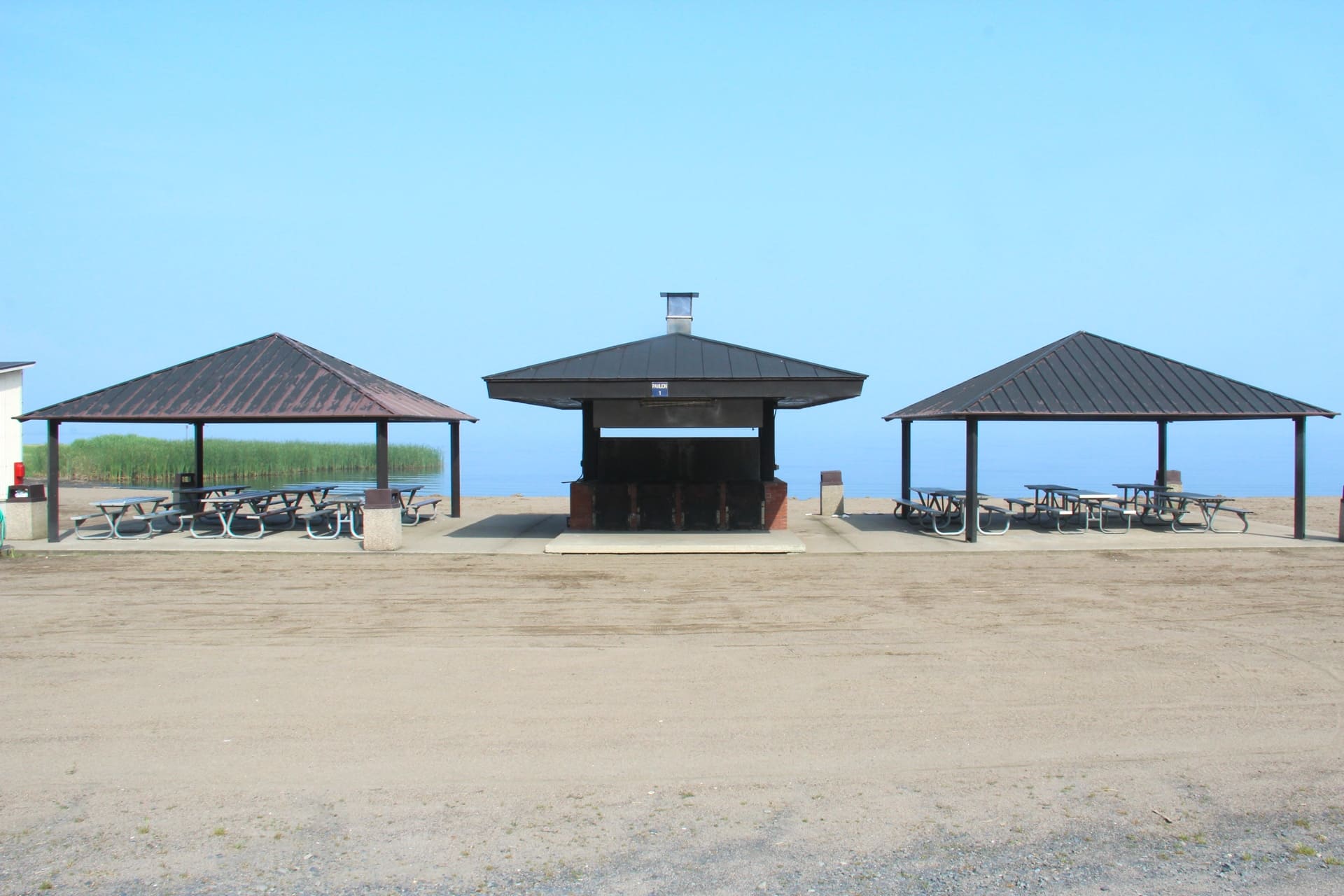 The large pavilion offers two covered seating areas and multiple grills for barbecuing. Located at the center of the beach grounds, it offers easy access to the Rental Office, volleyball court and restrooms.
