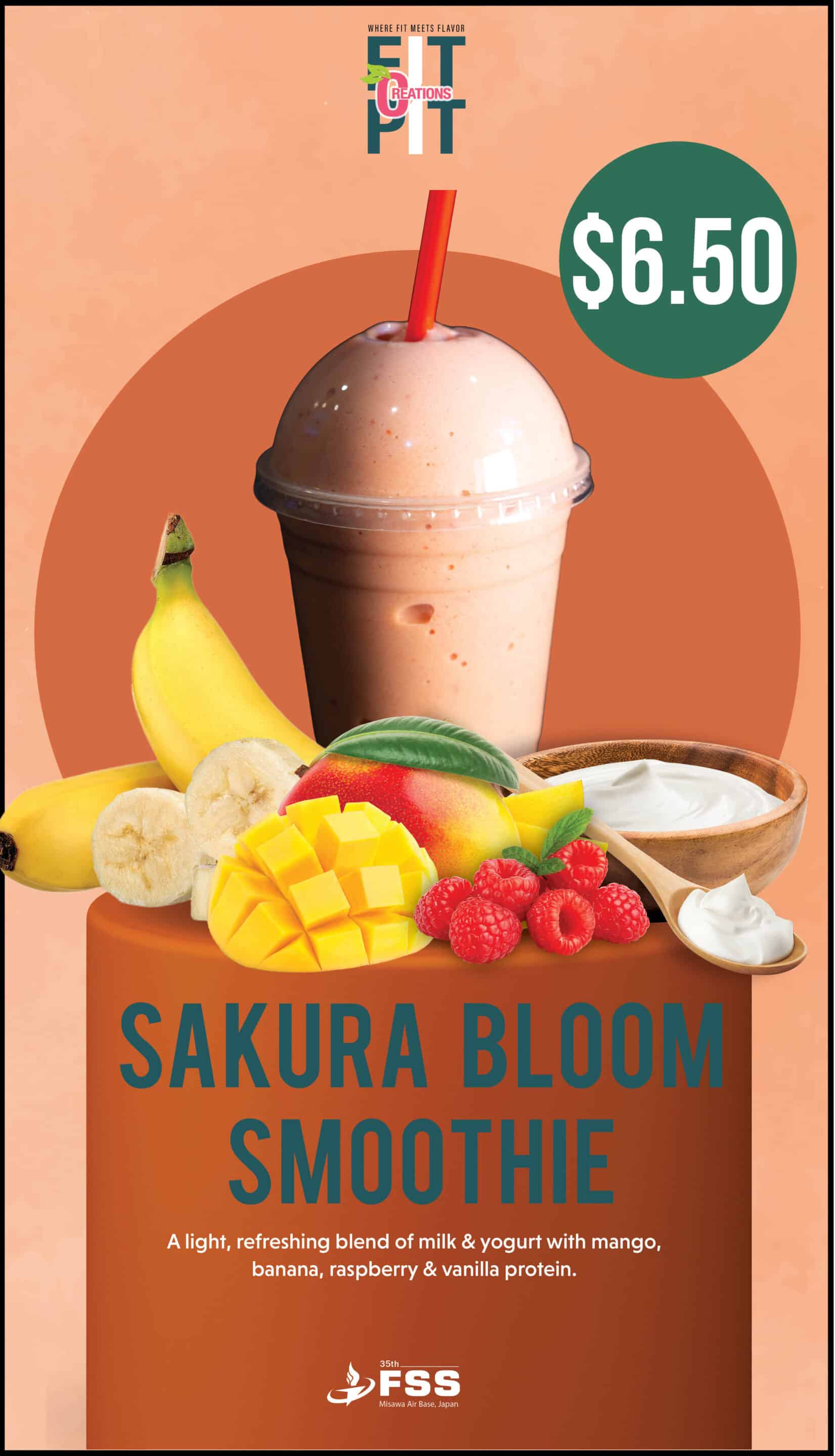 Vanilla yogurt, banana, strawberries, blueberries, flaxseed, spinach and coconut flakes